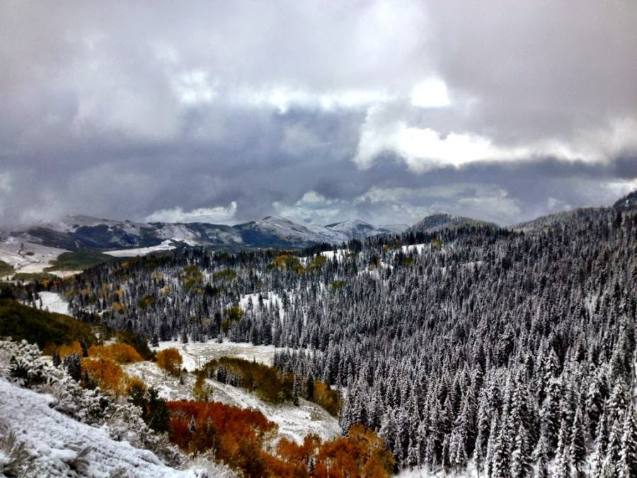 While the snow had let up halfway through day one of our mountain bike adventure in ski land, it started dumping again that evening and snowed all through the night and into the next morning. Nevertheless, we piled on the warm layers, loaded into the van, and headed back up toward Guardsman Pass.